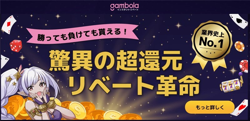 ギャンボラは2019年より運営を開始した新しいオンラインカジノサイト。実績がないから心配といった声は無用。オンラインカジノ業界では審査が厳しくて有名なマルタ共和国の運営ライセンスを取得して営業をしています。そして、ギャンボラが他オンラインカジノと一線を画する特徴がリベートボーナス。カジノゲームで勝っても負けてもリベートボーナスによるキャッシュバックの恩恵を受ける事が出来るオンラインカジノになってい...